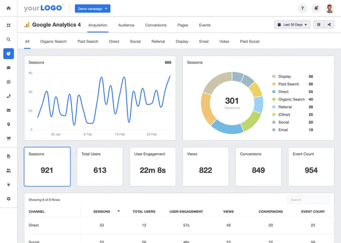 Google Analyticsは依然として多くの企業にとってデフォルトの選択肢です。無料版のGA4は2023年にユニバーサルアナリティクスに取って代わり、Analytics 360は大企業向けにプレミアム機能を提供します。どちらもトラフィックソース、イベント、コンバージョンの追跡が可能で、Google広告やSearch Consoleと緊密に連携するため、既にGoogleエコシステムを導入しているマーケティングチームにとって魅力的です。