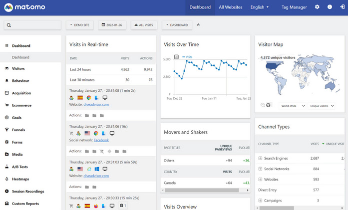 1. Matomo:プライバシーを最優先にしたウェブ・アナリティクスシステム